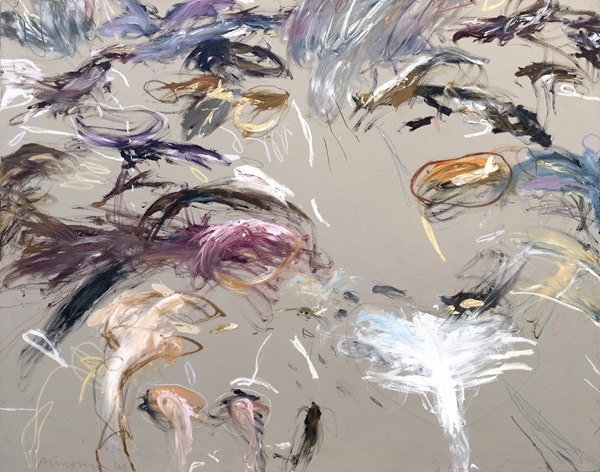 These visual qualities can also be seen in the paintings of flowers which continue this interest in abstract mark making in response to organic forms.