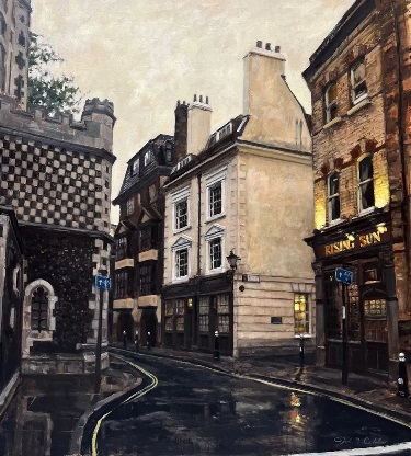 Over the past year Phil Tyler has been working on a new series of paintings inspired by early morning or late evening light. In Cinema, this is described as the Golden Time, when the sun is low in the sky and everything is bathed in a warm glow.